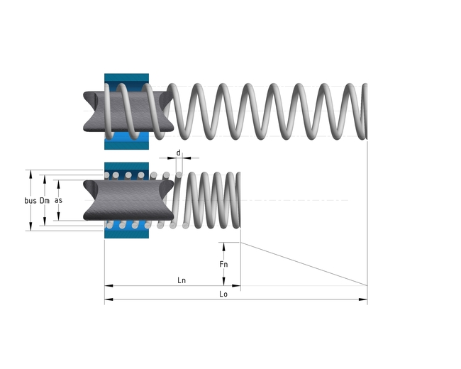 Tak więc maksymalna siła wywierana przez sprężynę wynosi Fn. Jeśli sprężyna ma pewne naprężenie wstępne, zwykle jest nazywane jest ono F1. Fn określa wydajność sprężyny.
